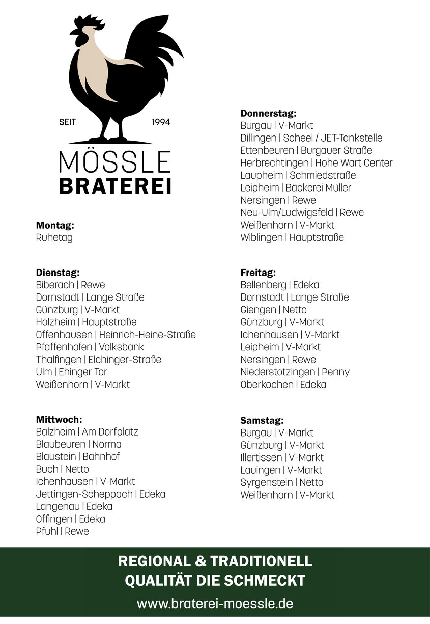 Um die Liste unserer Standorte zu öffnen klicken sie bitte auf das Pfeilsymbol neben "Braterei Mössle".